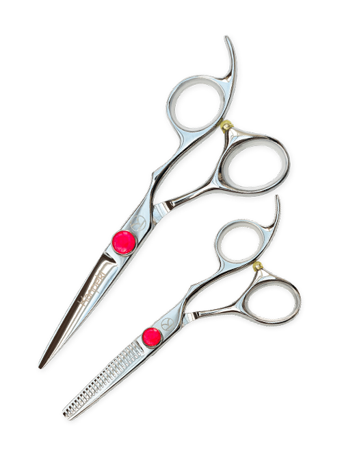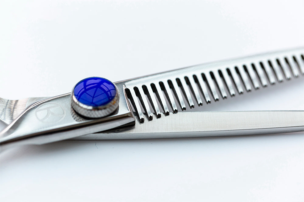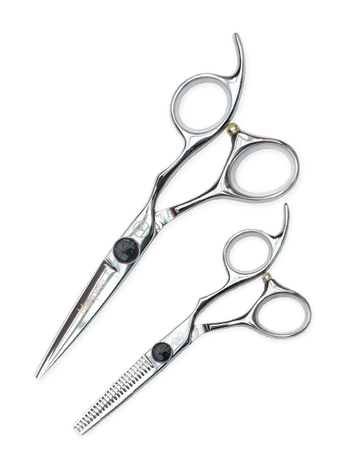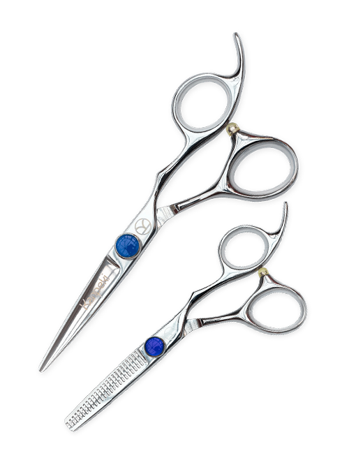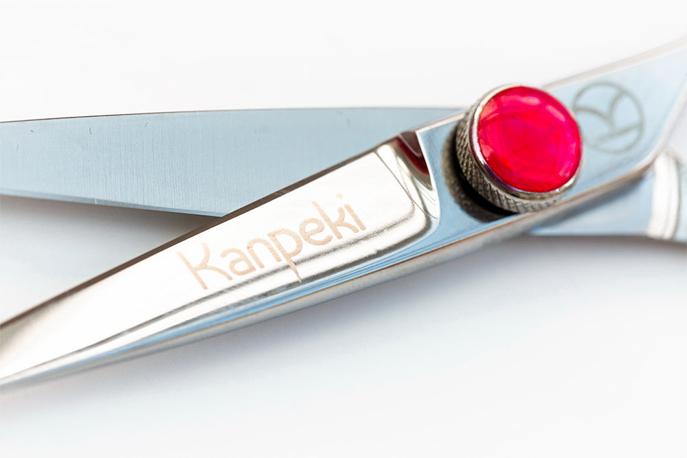 The razor-sharp convex blades of Kanpeki’s professional Diamond cutting and thinning scissors come with a profiled, slightly offset handle for precise control and comfort of the high-quality Japanese steel.