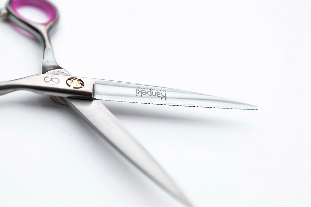 Kanpeki’s Piranha range of hairdressing scissors feature an offset profiled handle for comfort and control, alongside mini serrations on the bottom blade to hold hair for precise cutting.