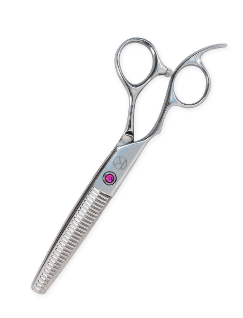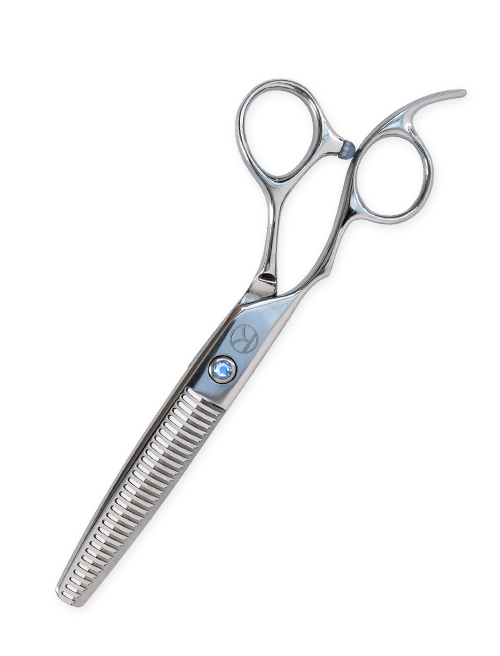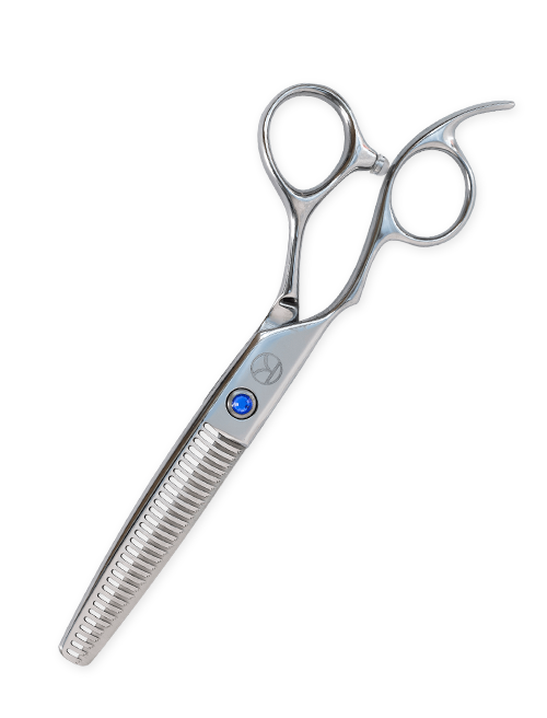Kanpeki’s Sapphire range of left-handed hairdressing scissors features an ergonomically-shaped, offset handle with straight blades and a comfortable finger rest, giving outstanding performance for all hair-cutting techniques with easy control and great balance.