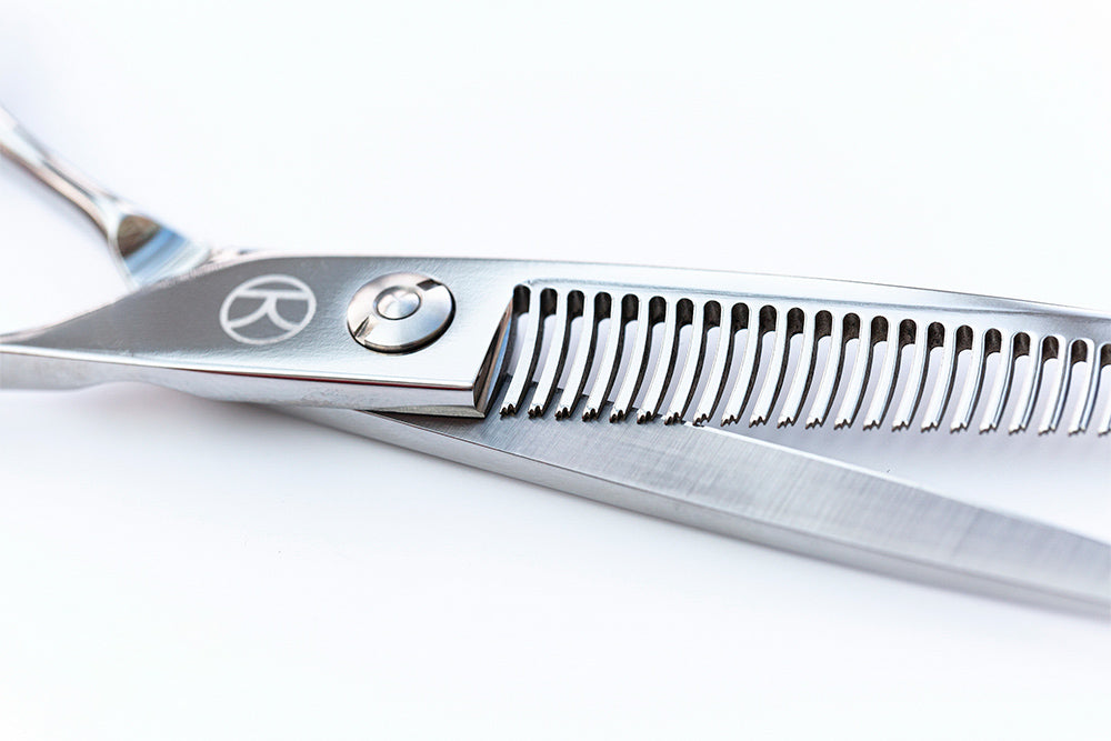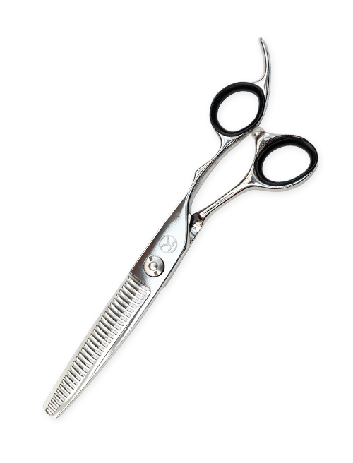 Kanpeki’s Van Gogh thinning scissors are a slim, perfectly-balanced hairdressing scissor with a flat precision ball bearing tensioner, perfect for close work with a comb. The slightly offset handle has been further styled for maximum comfort and ultimate blade control for the true professional, and our innovative tooth profile ensures smooth balanced texturising and no clogging thanks to its unique tooth profile and length.